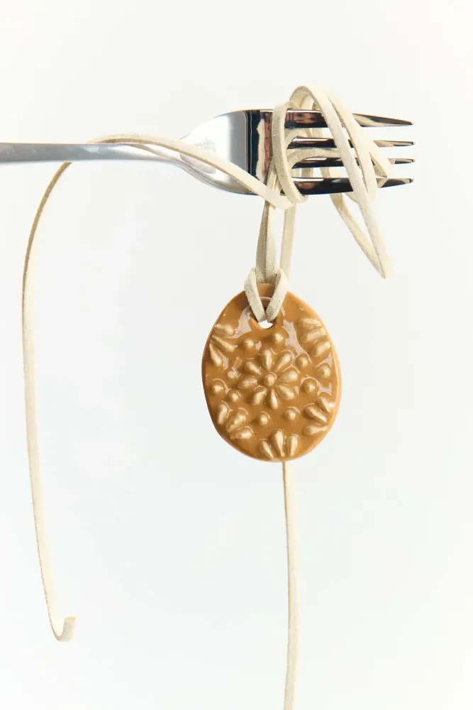 Матеріали: глина, прозора глазур, замшевий шнурочок.