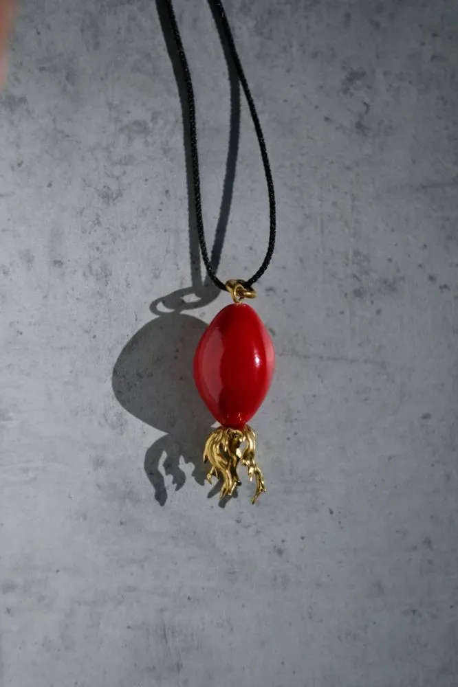Декоративна порцелянова прикраса "Ключик" на червоному шнурку