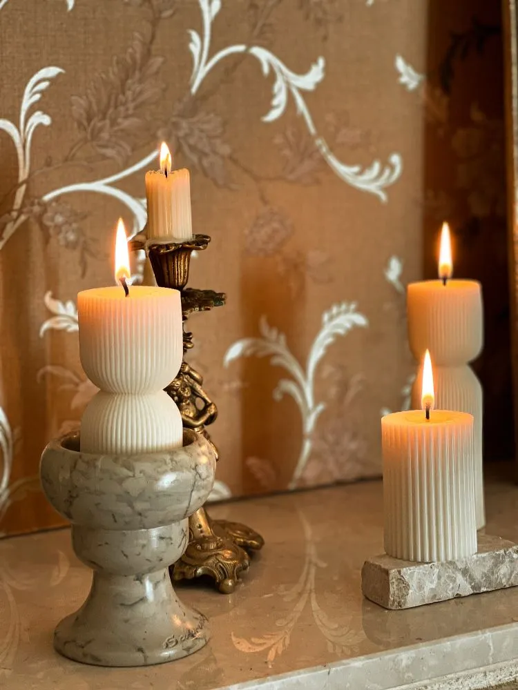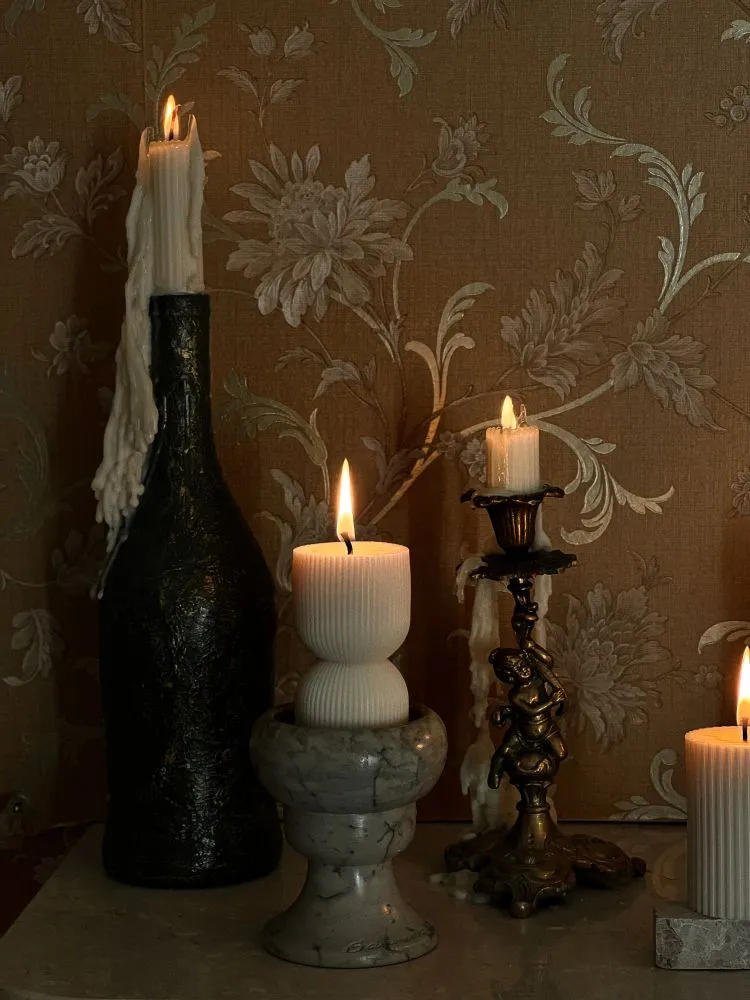 Пісочний годинник — елегантна декоративна свічка, що нагадує силует пісочного годинника. Виконана з натурального соєвого воску, час горіння — 8 годин.