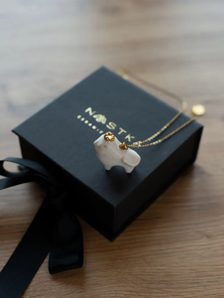Білий колір кераміки символізує чистоту і світло, а золоті деталі та корона підкреслюють гідність і велич образу. Лаконічна форма нагадує давні символічні фігури — прості, але наповнені глибоким змістом.