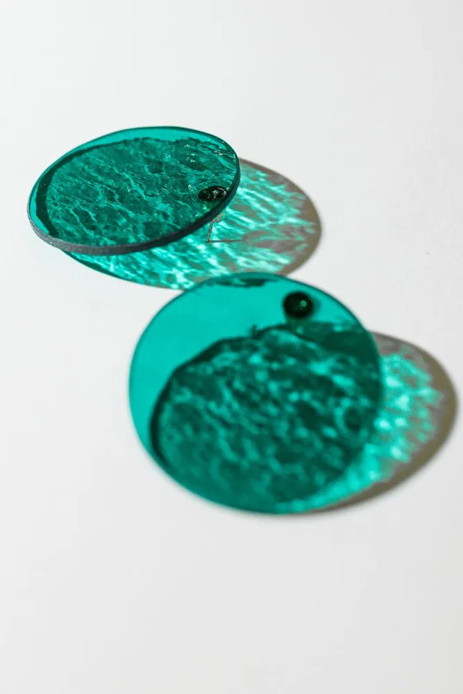 Сережки виготовлені вручну зі скла. Кожен елемент має унікальну форму та текстуру.