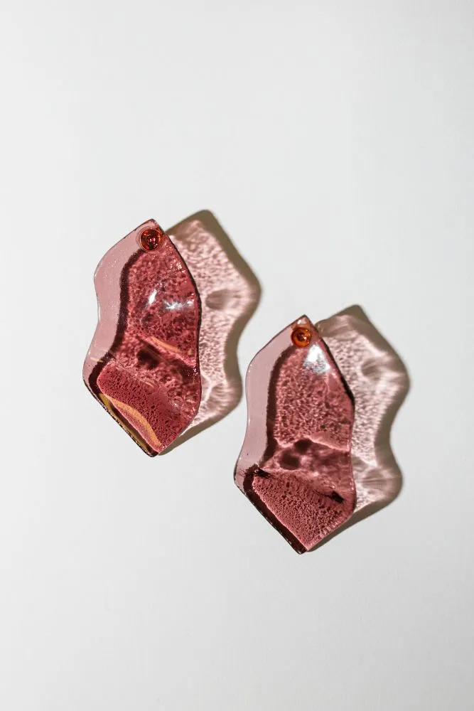 Сережки виготовлені вручну зі скла, створені методом випікання у печі. Кожен елемент має унікальну форму та текстуру.