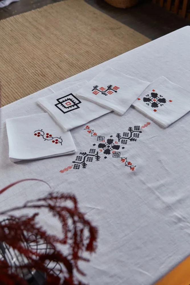 Вишивка "Український орнамент" поєднує у собі традиційні взори із різних регіонів України та із різних виробів. За цим ранером стоїть довга пошукова робота дизайнерки бренду та її творче бачення. Бо це не відтворення однієї давньої вишивки із збережених зразків, а органічне поєднання різних орнаментів у символічну форму Хреста, що означає перемогу світла над пітьмою та гармонію чотирьох стихій.
