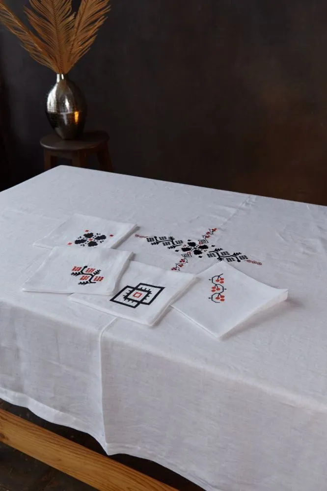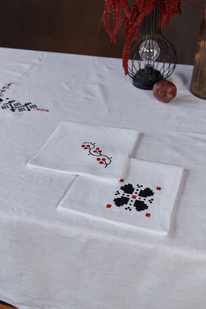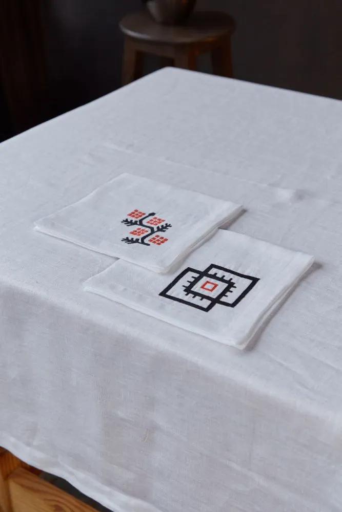 Серветка, білий льон льон, 40х40 см «Українська символіка»