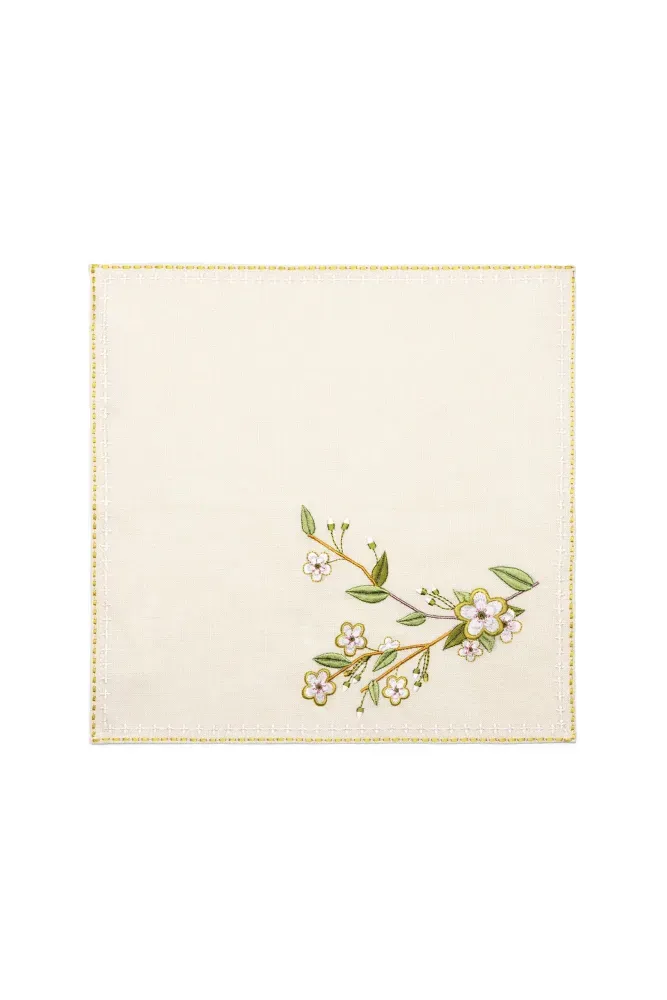 На серветці за допомогою машинної вишивки відтворено ручну техніку вишиття.