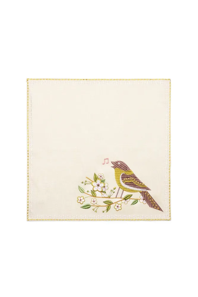 На серветці за допомогою машинної вишивки відтворено ручну техніку вишиття.
