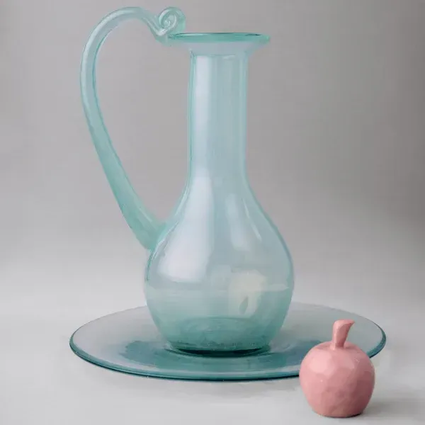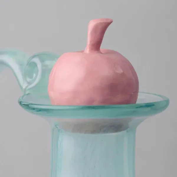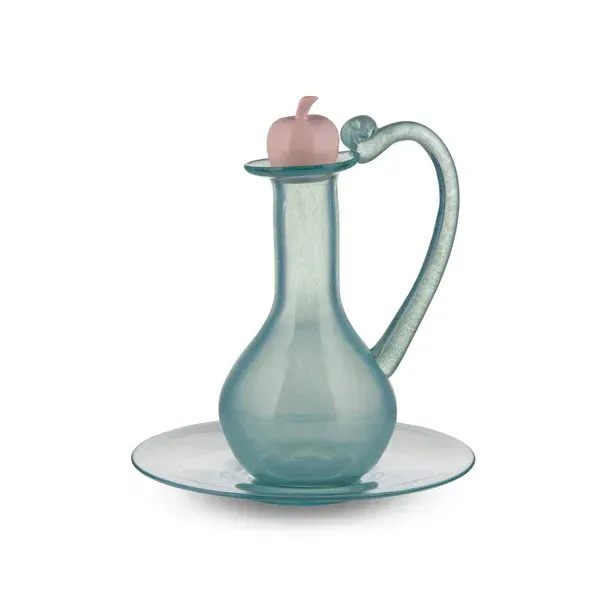 До комплекту входять скляний глек, дві склянки, таріль та керамічний корок у формі яблука або груші.