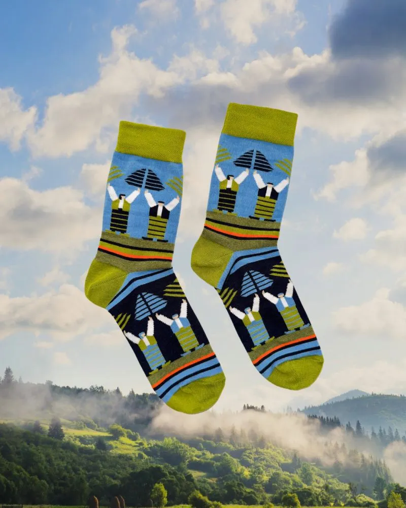 Зручні і красиві шкарпетки нахненні українським килимом “Свято на Буковині” який зберіається в українському музеї Торонто.
