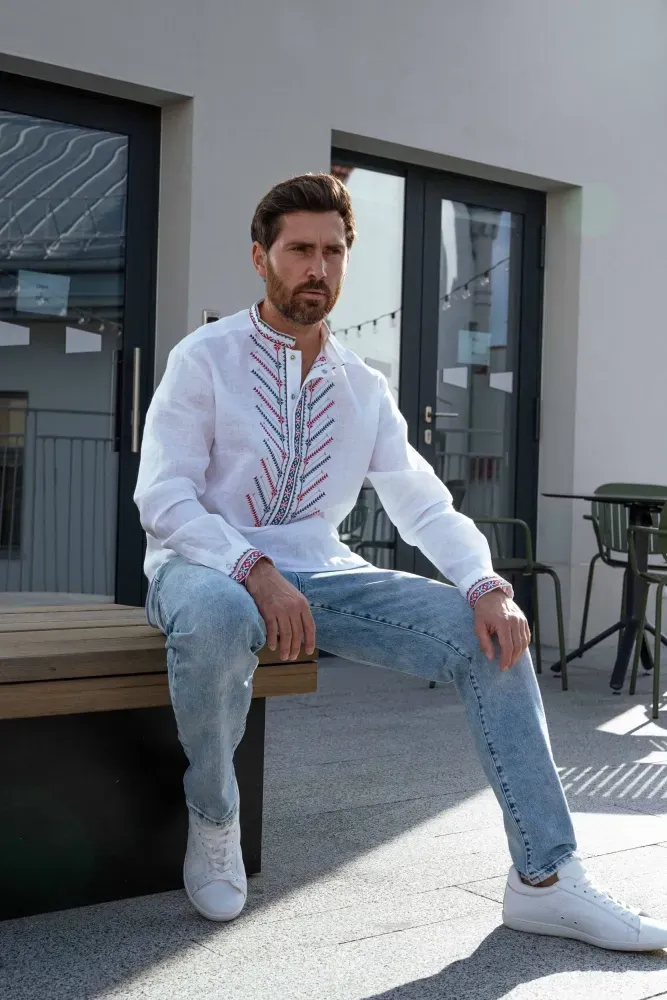 Візерунок створено машинною вишивкою з імітацією ручних технік вишиття.