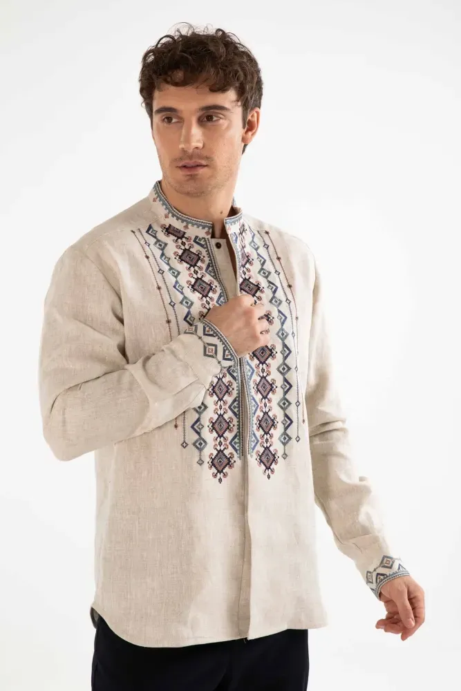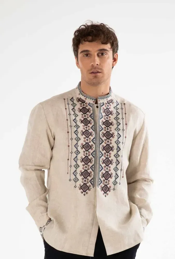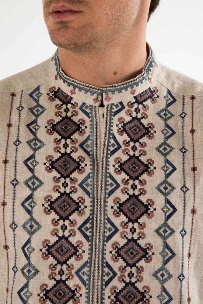 Візерунок створено машинною вишивкою з імітацією ручних технік вишиття.