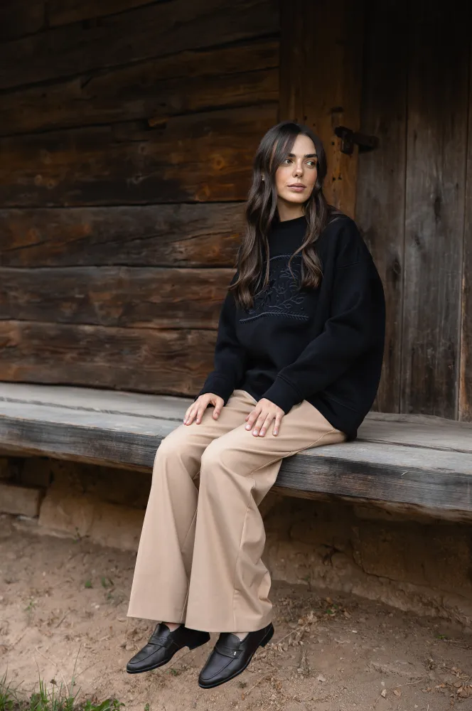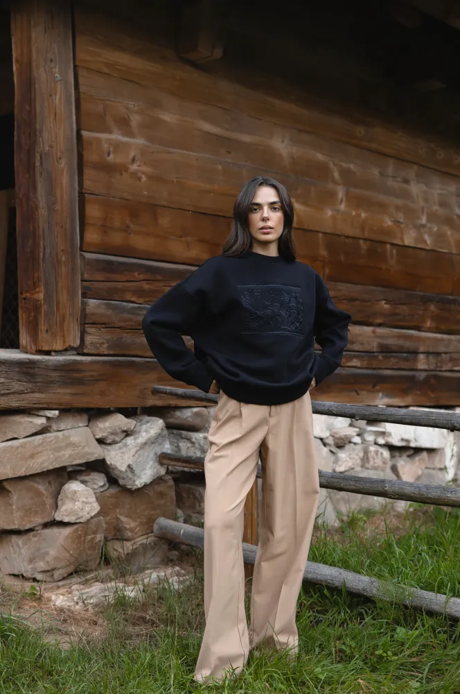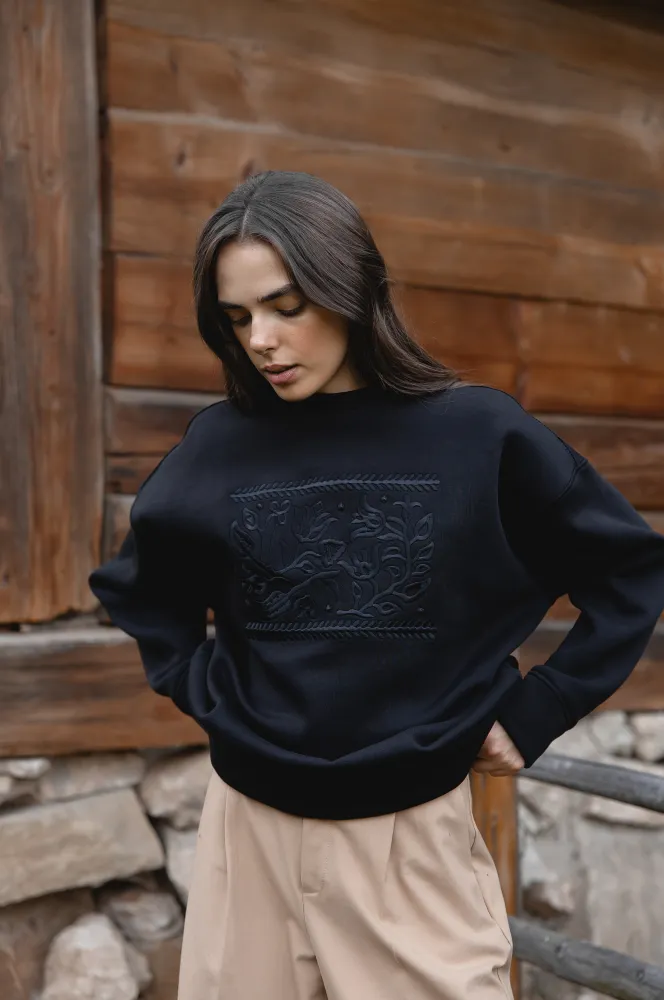Ми впевнені, що наші предки залюбки носили б таку светрівку. Тут рослинні орнаменти, нейтральні кольори, тепло та краса традиційного ремесла, що дуже пасує сучасности.