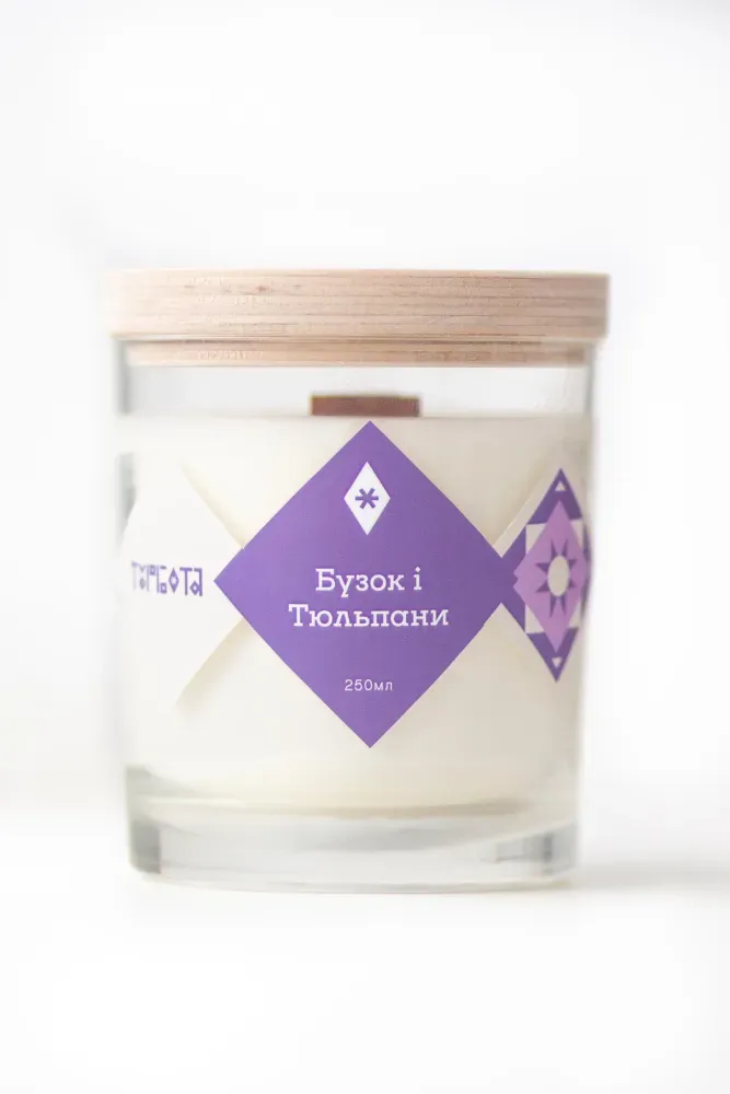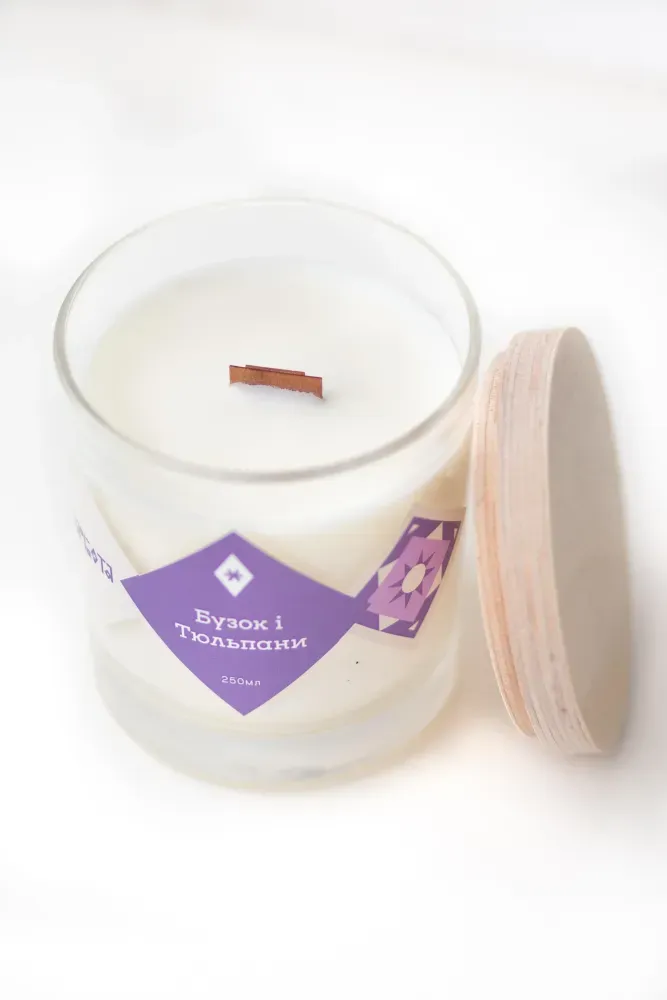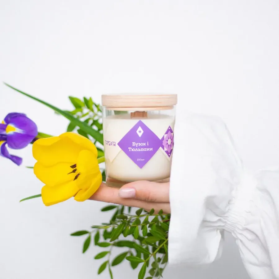 Свічка "Бузок та тюльпани" ніби відкриває двері до весняного саду, що пробуджує життя та радість. Її аромат розкриває ніжні ноти бузку та тюльпанів, переплітаючись з свіжим зеленим листя.