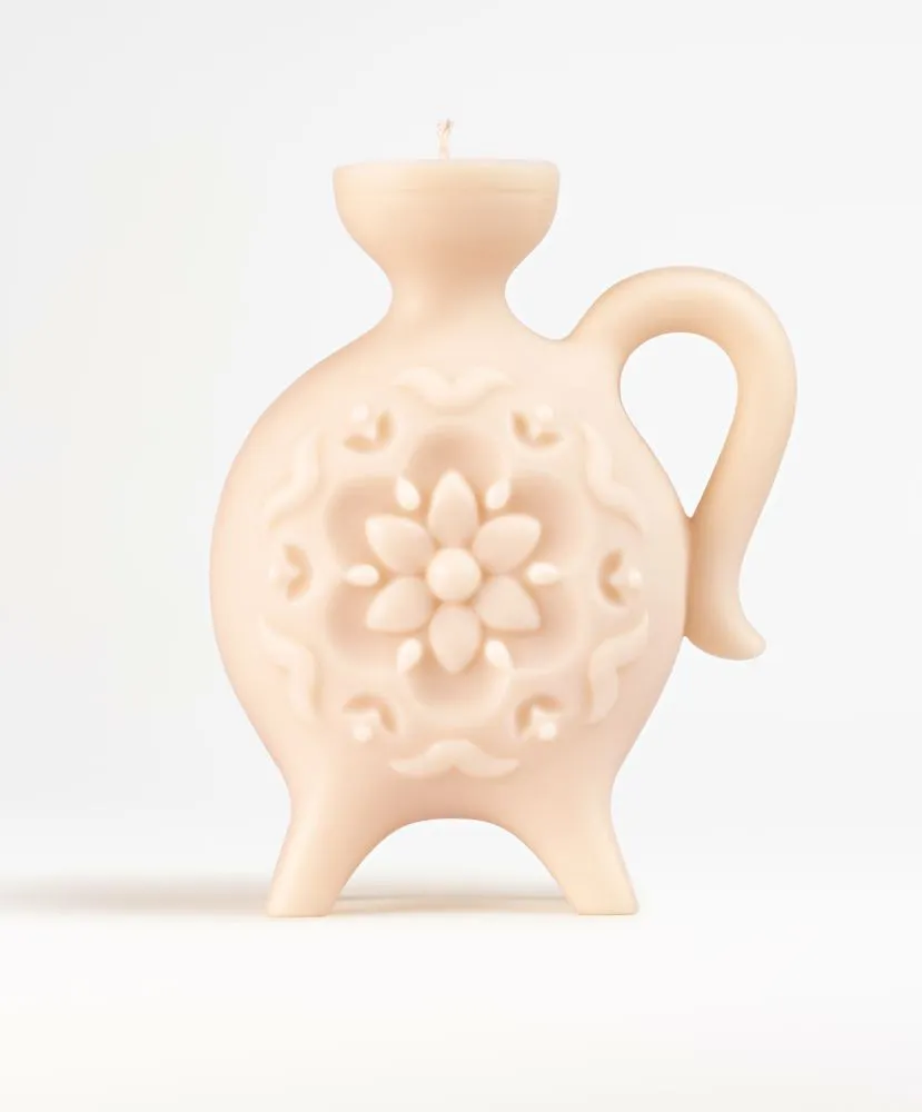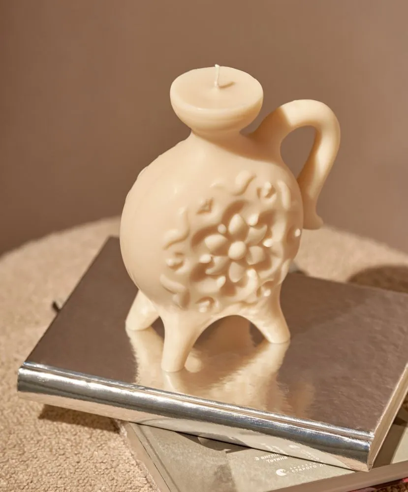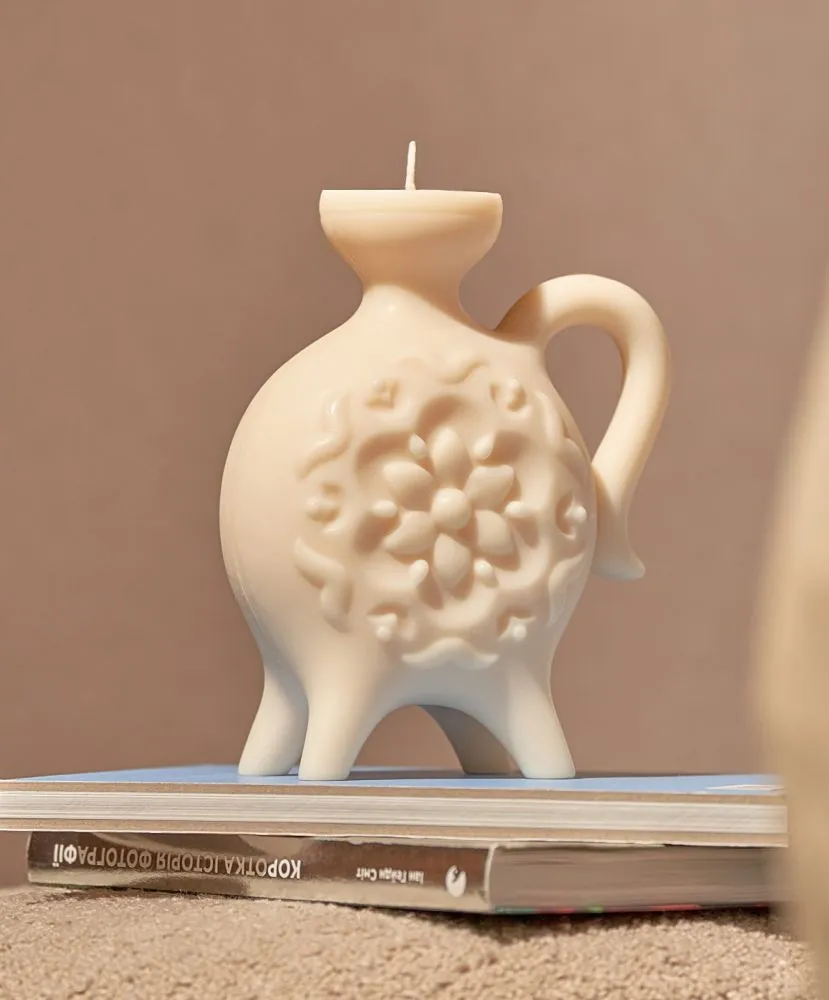 Сотні років глечик був незамінним у господарстві. Але з часом він втратив свою практичну роль, зупинившись на межі між пам’яттю і мистецтвом. Нам більше не потрібна його ужиткова функція, втім форма залишається все такою ж досконалою і витонченою. Її декоративність, візерунки та рельєфи продовжують захоплювати та приносити естетичну насолоду. Тому ми вирішили присвятити цій формі нову історію, перетворивши її на свічку.