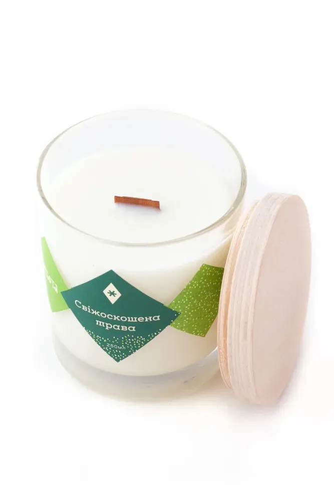 - Матеріали: Сертифікований соєвий віск, ароматичні олії та дерев'яний гніт, що потріскує, додають особливого затишку.