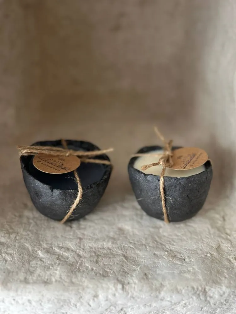 Кожна форма — неповторна та виготовлена вручну. Матеріали: папір, гіпс, соєвий віск та аромаолія. Екологічно чистий продукт, безпечний для вашого здоров’я та навколишнього середовища. Щоб не викидати тару, свічку можна перезалити, звернувшись із запитом до магазину.