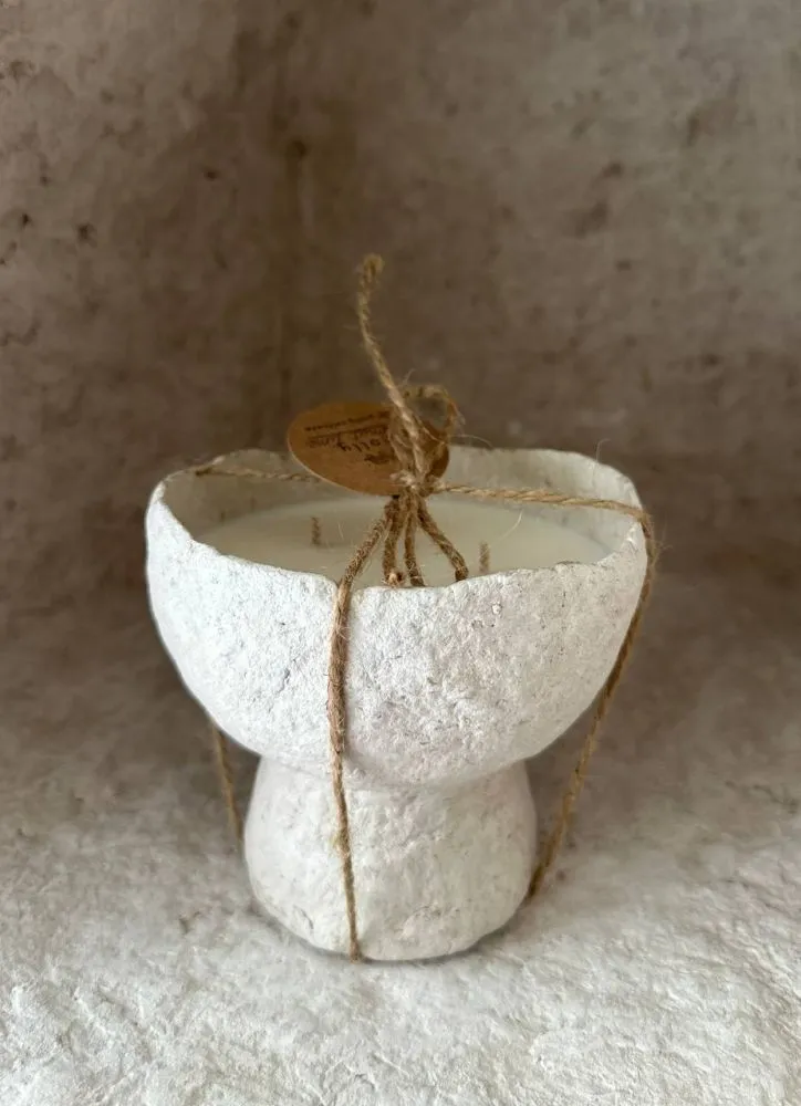 Кожна форма — неповторна та виготовлена вручну. Матеріали: папір, гіпс, соєвий віск та аромаолія. Екологічно чистий продукт, безпечний для вашого здоров’я та навколишнього середовища. Щоб не викидати тару, свічку можна перезалити, звернувшись із запитом до магазину.