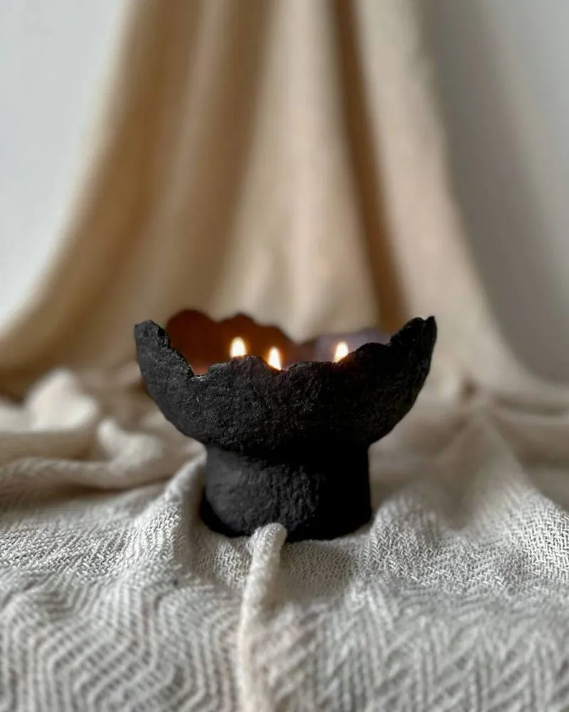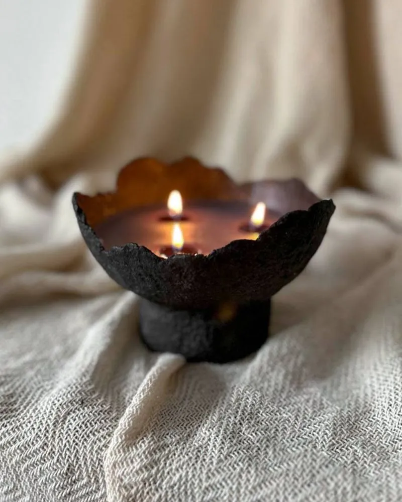 Кожна форма — неповторна та виготовлена вручну. Матеріали: папір, гіпс, соєвий віск та аромаолія. Екологічно чистий продукт, безпечний для вашого здоров’я та навколишнього середовища. Щоб не викидати тару, свічку можна перезалити, звернувшись із запитом до магазину.
