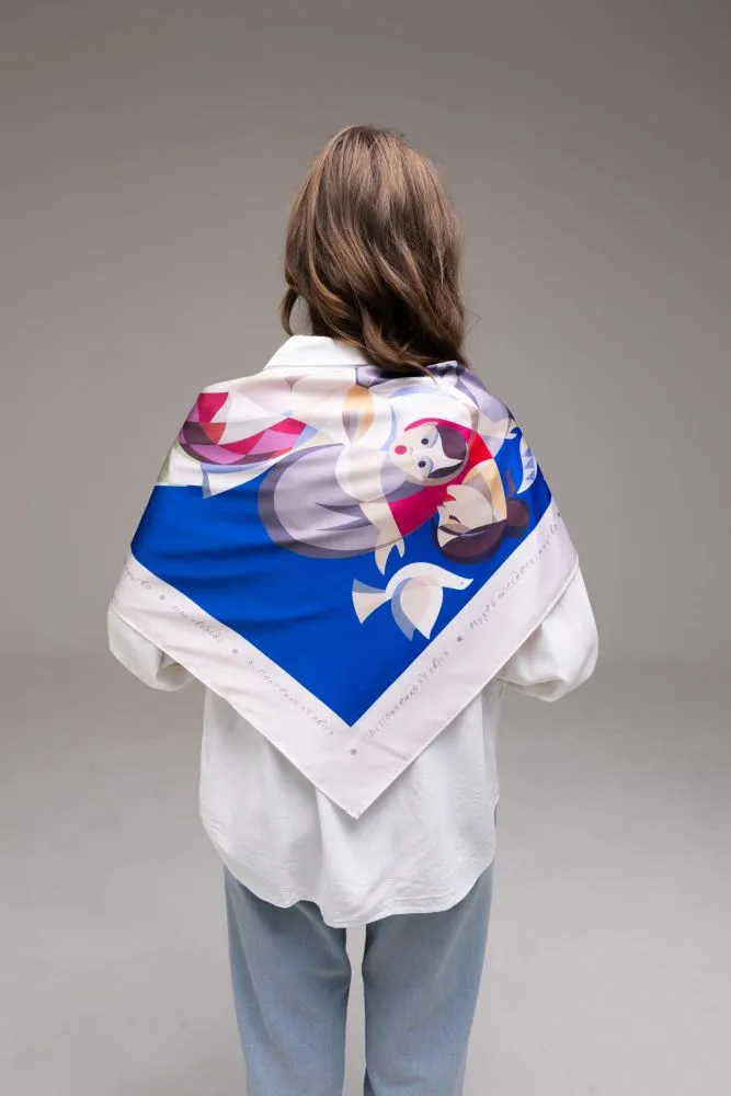 Хустка представлена у двох розмірах: S (52×52), L (82×82).