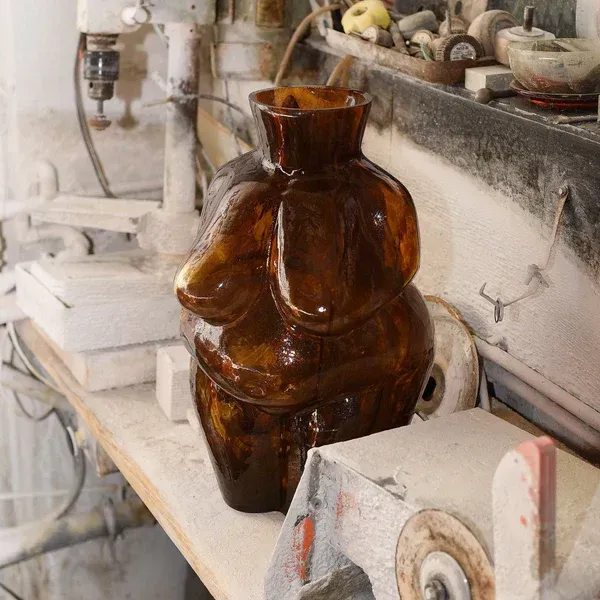 Ваза Venus виготовляється вручну з переробленого скла, кожна деталь створена з любов’ю та майстерністю. Її унікальний дизайн і велика форма роблять її центральним елементом будь-якого простору — чи то вітальня, чи художній салон.